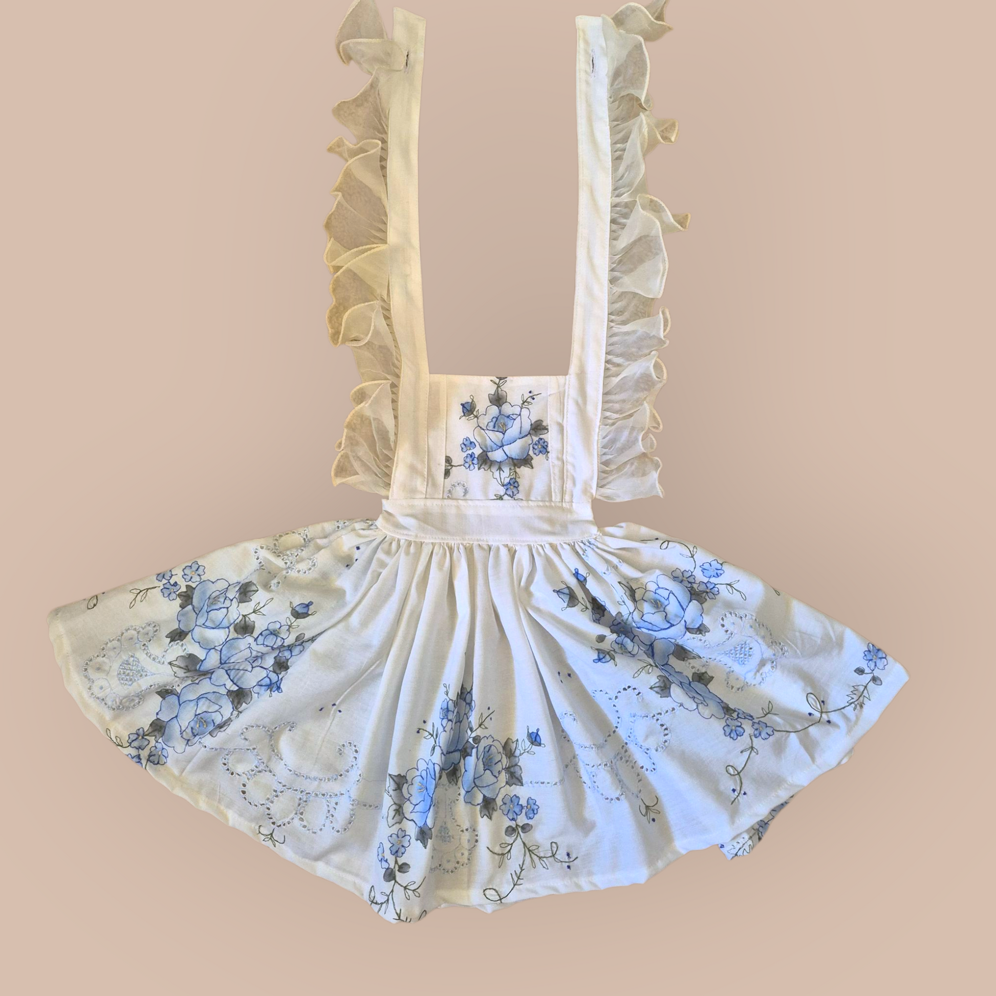 Made from upcycled vintage fabrics, this adorable dress features an elastic back and adjustable button straps to perfectly fit your little one. Ideal for a first birthday, cake smash, or photoshoot. Only one available—order yours now!